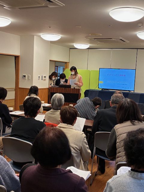 当日、初めての発表会に参加したご利用者のみなさんにも多少の緊張が伺える中、会場でその職員と久々に顔合わせをし、発表が近づくと「がんばれー!」と声援を送る姿に、発表する職員も力をもらったことでしょう。